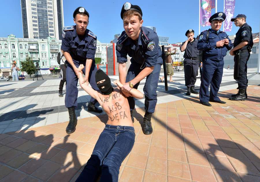 En los momentos previos a la final de la Eurocopa 2012, manifestantes de FEMEN protestaron contra la presencia en el partido del presidente bielorruso Alexander Lukashenko.